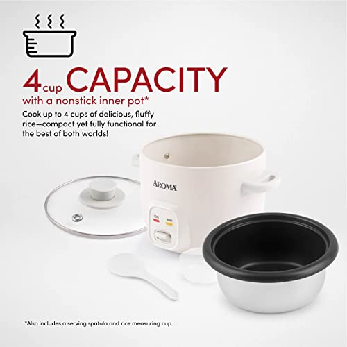 Aroma Housewares 4-Cups (Cooked) / 1Qt. Rice & Grain Cooker (ARC-302NG), White