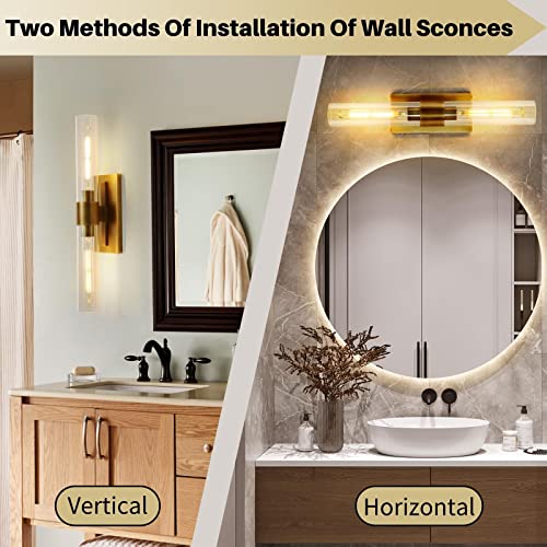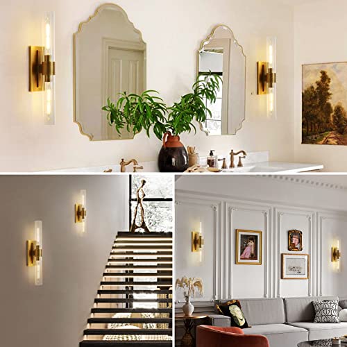 Specification: Brass Wall Sconces Set Of Two, 2-Light Dimmable Gold Sconces Wall Lighting 22.8 inches Bathroom Sconces Over Mirror With Tube Glass Vanity Lighting Wall Lamp Wall Lights For Living Room, Hallway