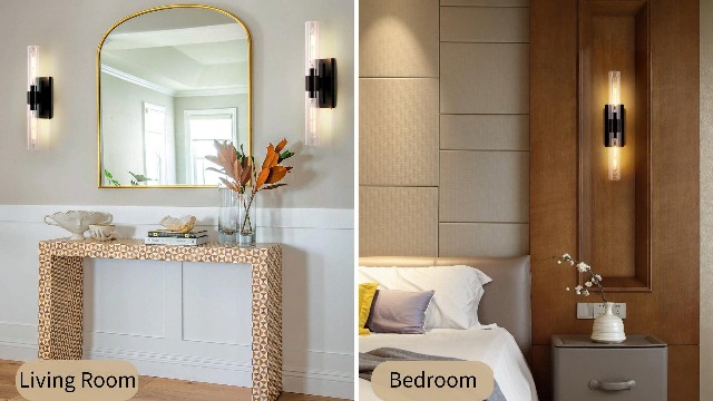 💡TWO INSTALLATION METHODS: Thanks to the tubular clear glass shade, the wall sconce’s bulb illumination range is up to 350°. During the installation of the wall sconce, you can install the wall sconce horizontally above the mirror or vertically to the left and right of the mirror.