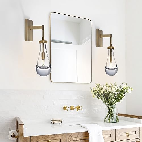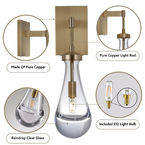 Specification: Brass Wall Sconces Set of Two, Raindrop Gold Sconces Wall Lamp, Stairway Wall Light With Luxury Clear Glass, Bedside Sconces Wall Lighting Bathroom Light Fixtures Vanity Lighting, Included Bulbs