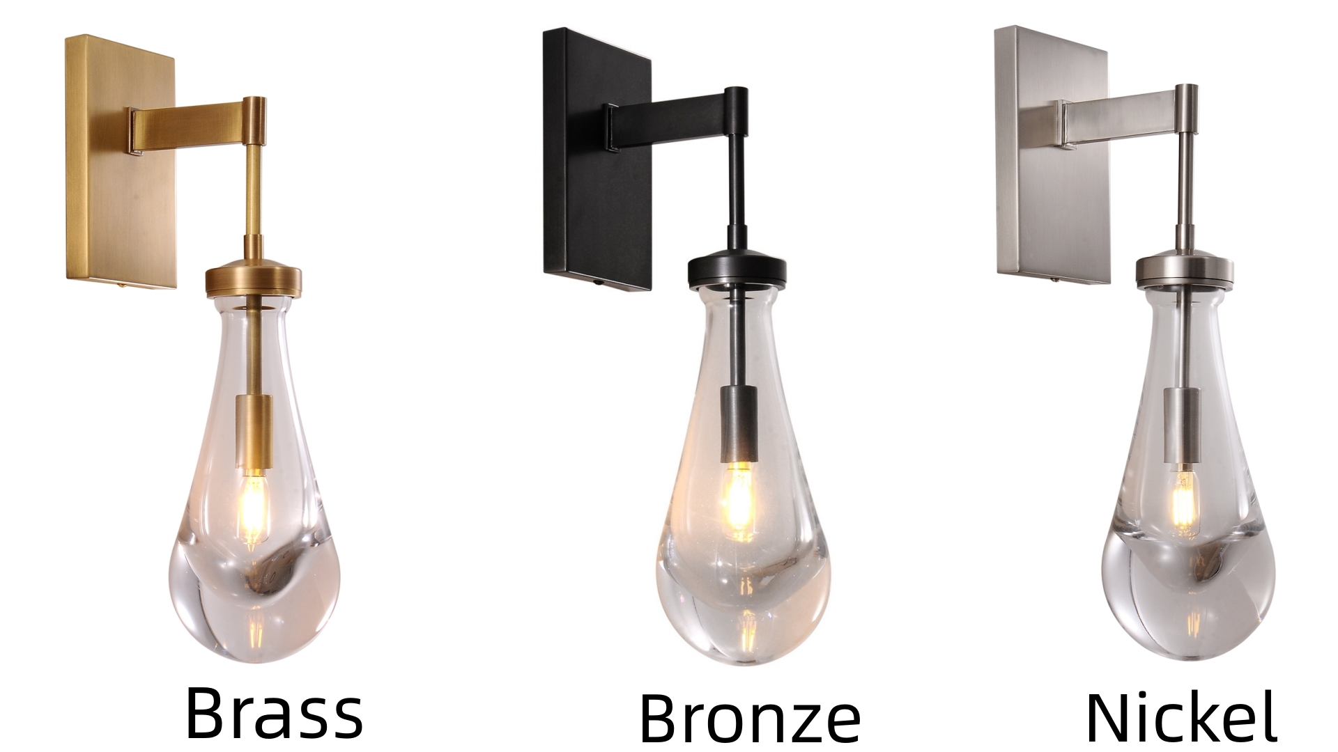 【Thickened Material】All the external metal parts of this wall lamp are made of copper, which makes this wall light fixtures more textured. The hand-blown glass shade makes each sconces wall lighting a unique presence. The bottom of the raindrop glass shade is thicker, making the light softer.