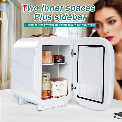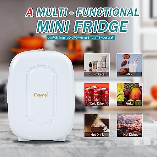 CAYNEL Mini Fridge Portable Thermoelectric 4L/6 Can AC/DC Cooler and Warmer for Skincare,Food,Beverage,Beauty & Makeup small Feidge for Bedroom,Car and Office (White)