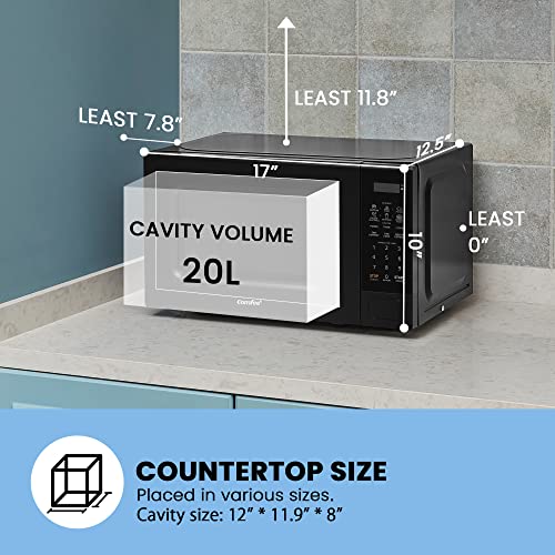 Specification: COMFEE CMO-C20M1WB Countertop Microwave Oven with 11 power levels, Fast Multi-stage Cooking, Turntable Reset Function, Speedy Cooking, Weight/Time Defrost, Memory function, Children Lock, 700W