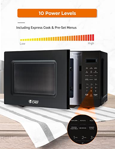 COMMERCIAL CHEF Small Microwave 0.7 Cu. Ft. Countertop Microwave with Digital Display, Black Microwave with 10 Power Levels, Outstanding Portable Microwave with Convenient Push Button