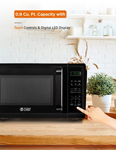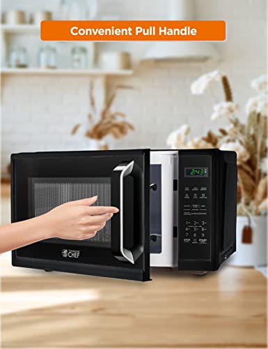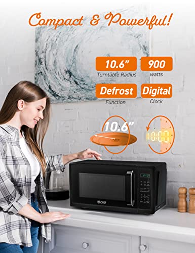 COMMERCIAL CHEF 0.9 Cubic Foot Microwave with 10 Power Levels, Small Microwave with Grip Handle, 900W Countertop Microwave with Digital Display, Door Lock and Kitchen Timer, Black