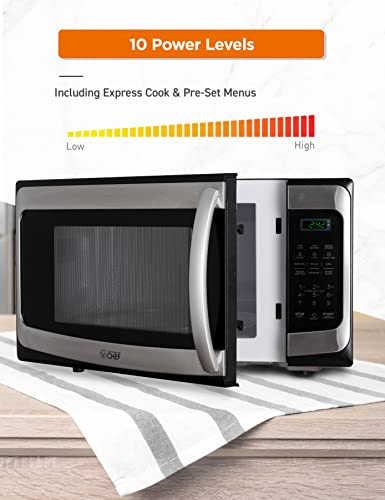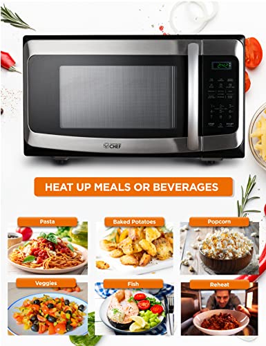 COMMERCIAL CHEF 1.1 Cu Ft Microwave with 10 Power Levels, Microwave 1000W with Push Button Door Lock, Countertop Microwave with Microwave Turntable and Digital Controls, Stainless Steel