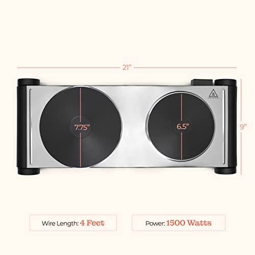 Specification: Electric Double Stovetop Hot Plate for Cooking 1800W 7.3/4″ Glass Cast Iron Portable Stove Burners Cool Touch Handle Cooktop Keeps Food Warm Temperature Controls Electric Burner for Kitchen, Dorm