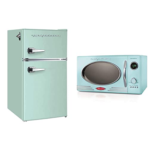 Frigidaire EFR840-MINT EFR840 Retro Mini Fridge, Mint & Nostalgia Retro Countertop Microwave Oven – Large 800-Watt – 0.9 cu ft – 12 Pre-Programmed Cooking Settings – Digital Clock – Aqua