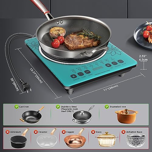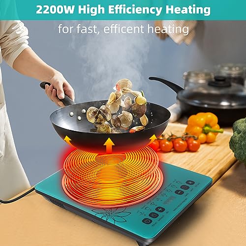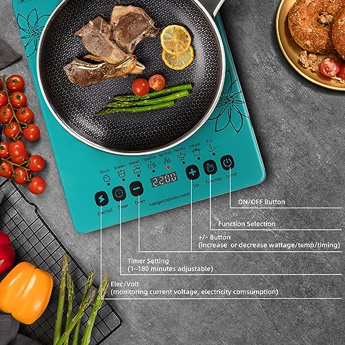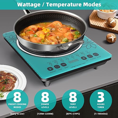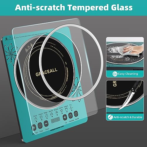 Specification: GRACEALL Electric Stove Induction Cooktop Countertop Hot Plate for Cooking, 120V 2200W Portable Cooker Single Burner Cook Top, 8 Power Levels and 3-hour Timer, Gem Green