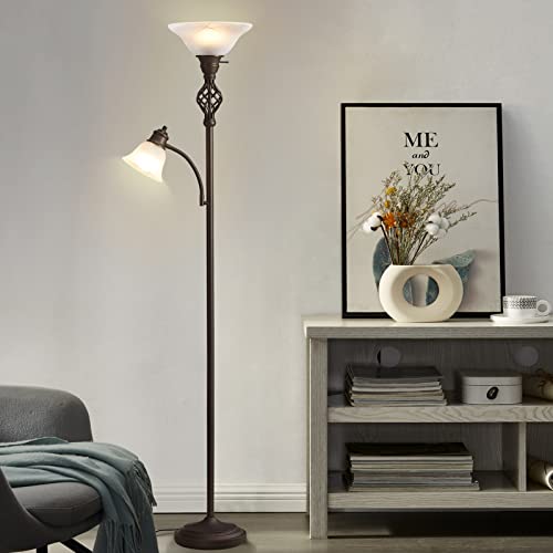GyroVu Torchiere Floor Lamp for Living Room, LED Standing Reading Light for Bedroom with Glass Shade for Living Room Corner Bedroom Home Office,Bulbs Included