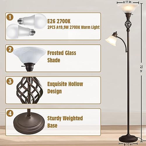 [LED Bulbs Included] The floor lamp quipped with 2 A19 9W LED bulbs with a 50,000 hours lifespan, it will reduce the electricity bills and maintenance costs compared to traditional incandescent bulbs, saving energy and saving your money.The standing lamp keep a cool touch even after hours of use, so no worries about the overheating issue.