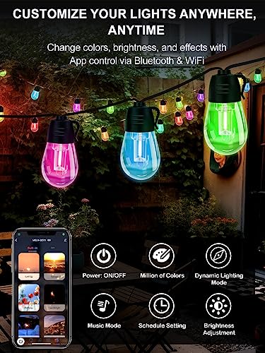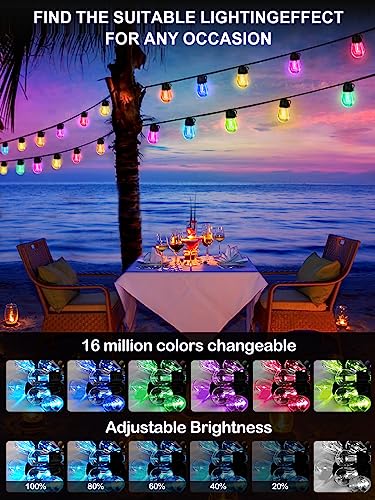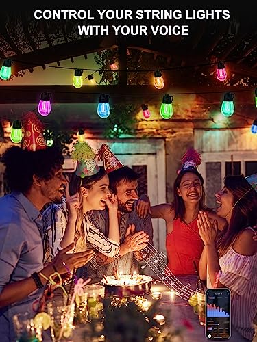 Specification: Hslifoyu Outdoor String Lights, 49ft RGB Outdoor Lights with 20 IP65 Waterproof Bulbs, S14 Dimmable LED Patio Lights, Smart Outdoor String Lights Work with APP for Garden Yard Party, Wedding Decor