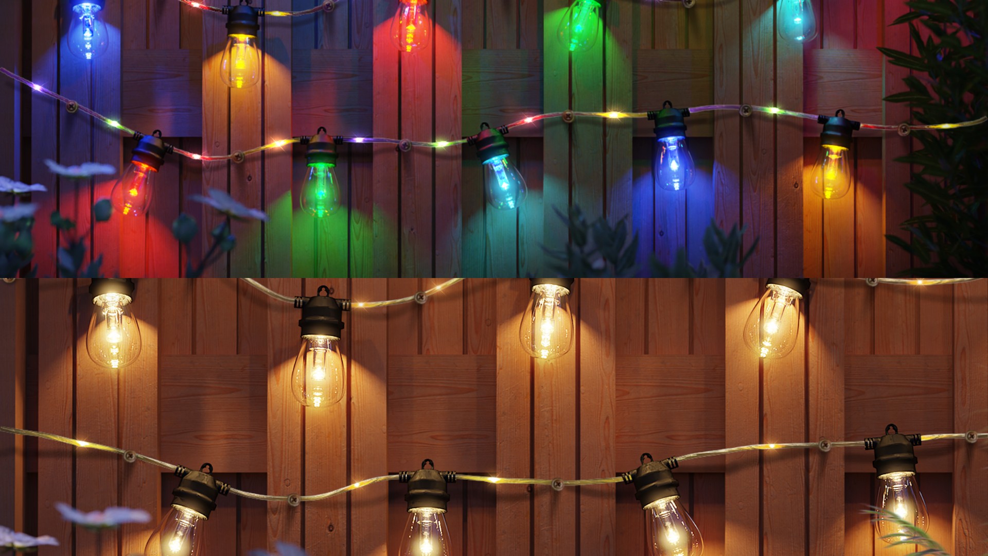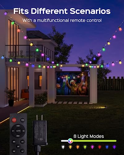 【8 Light Modes & Timer Function】Color-changing string lights for patio offer the option between RGB multi-colors and 3000K warm white. Equipped with a multifunctional remote control, you can choose between 8 charming lighting modes. Outdoor string lights also have a timer function. They meet your various lighting needs for different scenarios.
