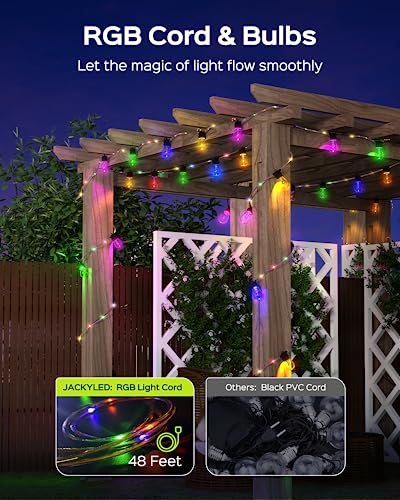 Specification: JACKYLED 160 LED Outdoor String Lights, 48FT RGB Patio Lights with Rope Fairy, Waterproof Edison Bulb String Lights for Outside Indoor Christmas Party, Remote Control, Warm&Multi, Not Extendable, 1 pc