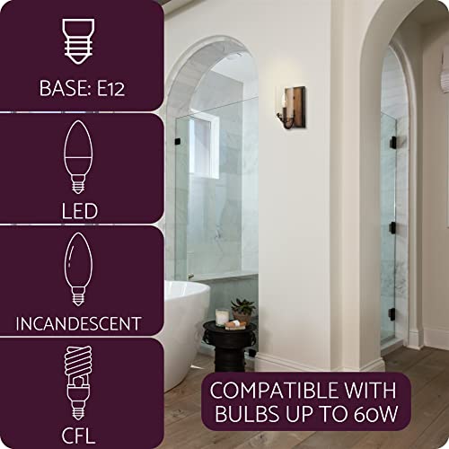 UL/ETL LISTED FOR YOUR SAFETY: UL/ETL listed for damp locations. Uses (1) LED, CFL or up to 60W Type B candelabra base bulb. Bulb sold separately