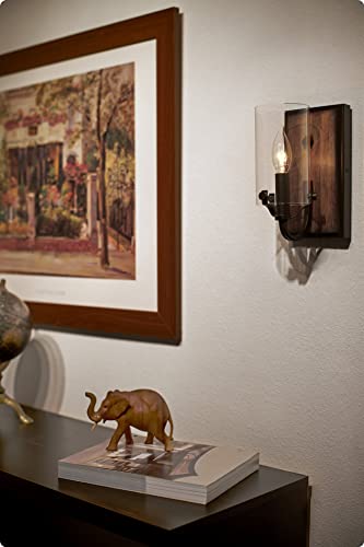 Specification: Kira Home Aspen 9″ Rustic Farmhouse Wall Sconce + Cylinder Glass Shade, Walnut Style Wood + Oil Rubbed Bronze Finish