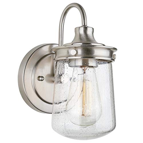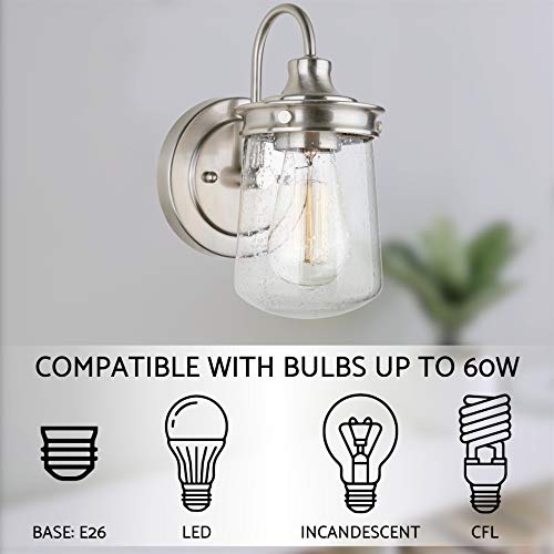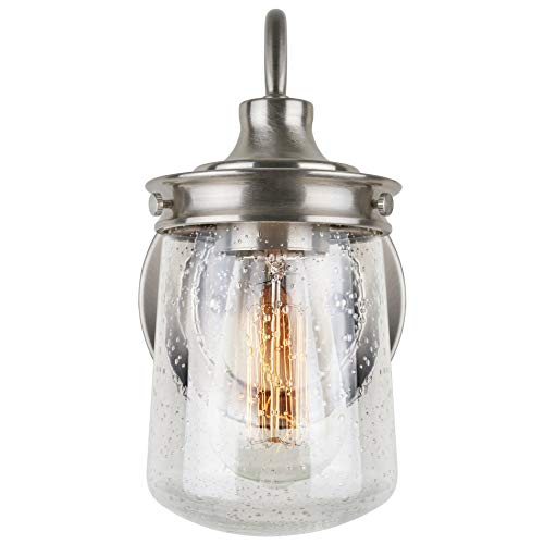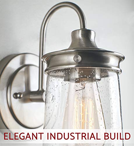 BRIGHT AND CHARMING: Stunning brushed nickel industrial farmhouse light fixture features a uniquely designed jar shade. This enclosed seeded glass sconce emits a bright glow and ambiance to any home. Fits other styles including rustic, modern and nautical