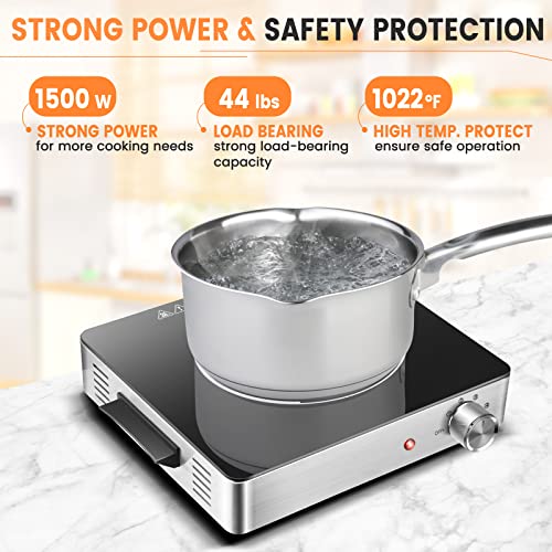KXITGSIMRE 1500W Electric Hot Plate, Single Burner for Cooking, Portable Infrared Electric Stove with Knob Control/Low Noise/Easy to Clean