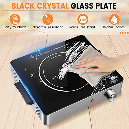 Specification: KXITGSIMRE 1500W Electric Hot Plate, Single Burner for Cooking, Portable Infrared Electric Stove with Knob Control/Low Noise/Easy to Clean