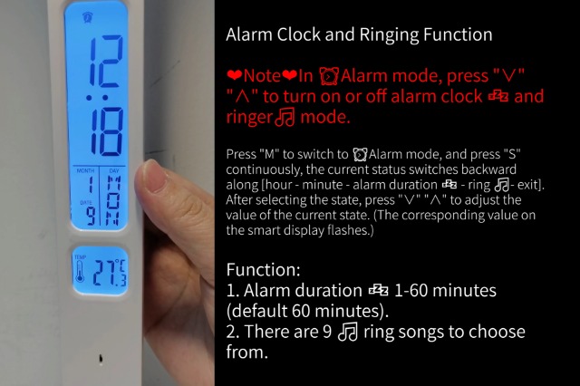 【Smart Screen Design】The smart display of lamp for desk with coin cell battery can show the time date and temperature. Long press the “M” button on the touchpad to turn on or off the brightness of the desk lamp display.