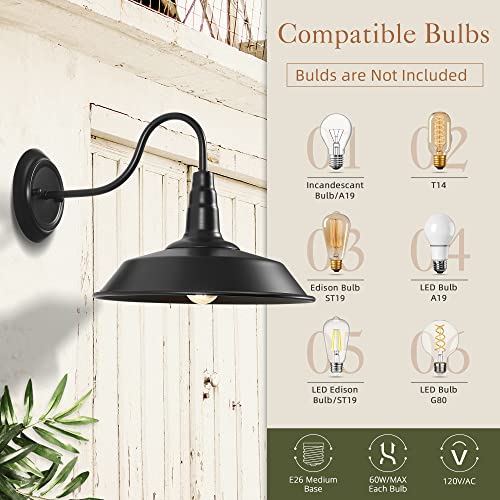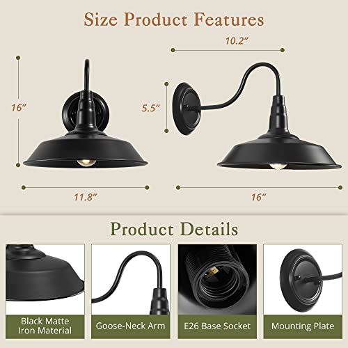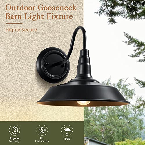 Specification: LEDIARY 12 inch Gooseneck Barn Lights Outdoor, Exterior Classic Black Outdoor Wall Sconce for Porch, House, Farmhouse, Garage, 2-Pack