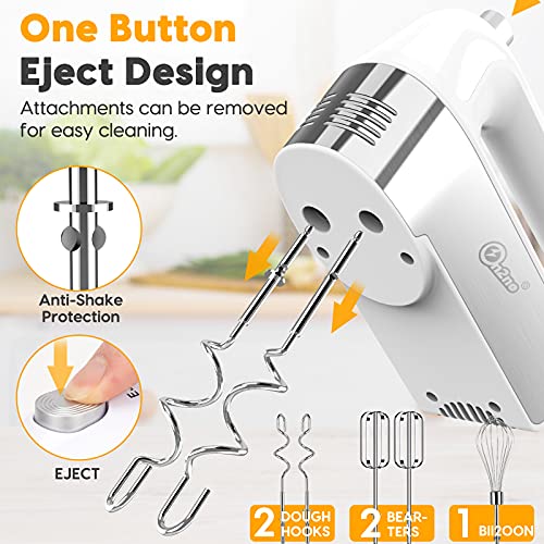 【EJECT BUTTON & VERTICAL DESIGN】One-button eject design, easily take out the accessories from the hand mixer heavy duty with the single hand. (Pls adjust the speed to 0) Ergonomic grip is comfortable can store it vertically on the table.