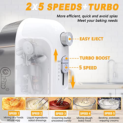 【5 SPEEDS with TURBO BOOST】Hand mixer with 0-5 adjusted speed will meet all of your mixing needs. TURBO speed up for each gear will more efficient, quick and avoid splash.