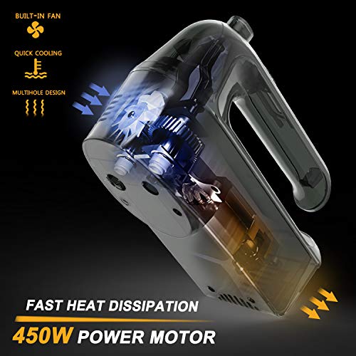 【400W MOTOR & FAST HEAT DISSIPATION】400W kitchen handheld mixers with heavy-duty more power to mix, blend or whip the egg, cake batter, dough, cream easier. Handheld mixer built-in fan and multihole design for quick cooling for longer life. Good choice for your kitchen.