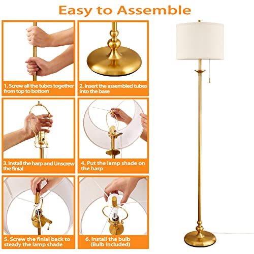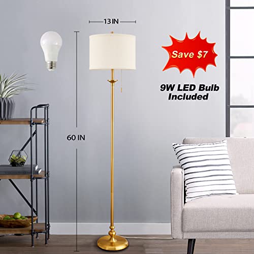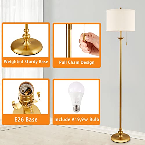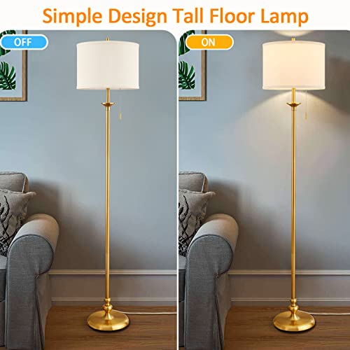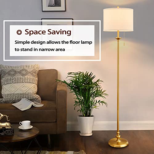 Luvkczc Modern Floor Lamp, 60″ Standing Lamp for Living Room with Fabric Lamp Shade&Pull Chain, Corner Tall Reading Light for Bedroom, Office, Dining Room, Farmhouse (Bulb Included),Gold