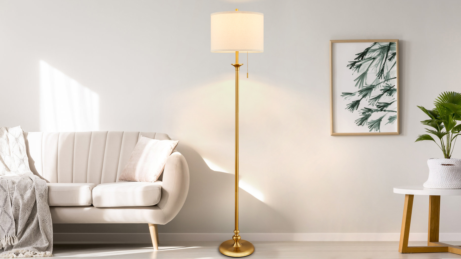 Specification: Luvkczc Modern Floor Lamp, 60″ Standing Lamp for Living Room with Fabric Lamp Shade&Pull Chain, Corner Tall Reading Light for Bedroom, Office, Dining Room, Farmhouse (Bulb Included),Gold