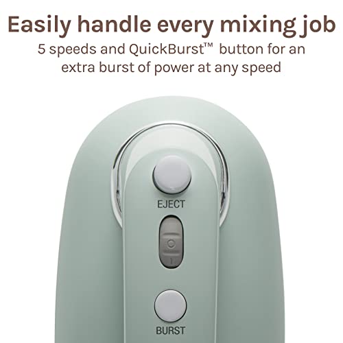 Hamilton Beach Magnolia Bakery 5-Speed Electric Hand Mixer,Powerful 1.3 Amp DC Motor for Effortless Mixing&Consistent Speed in Thick Ingredients,Slow Start,Beaters and Whisk,Green(62601)