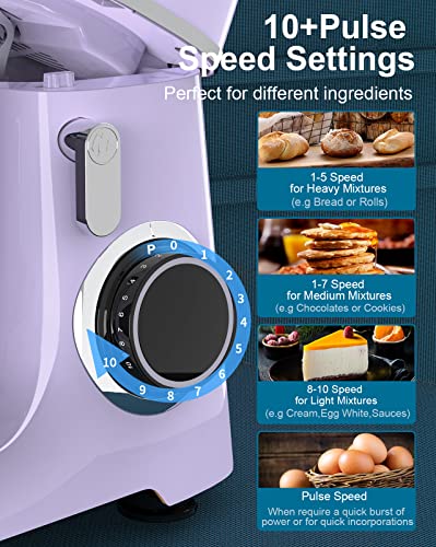 Specification: Mini Angel Stand Mixer,10-Speed Kitchen Electric Mixer,Tilt-Head Food Mixer with Dough Hook, Wire Whisk, Flat Beater, Stainless Steel Bowl (5.5QT, Lavender)