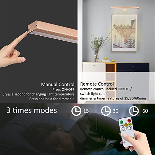 【Brightness Dimmable & Timer auto-off】- Press the “+” or “-” button to adjust the brightness level of the accent light as you wish.The led picture light comes with 300 Lumens super bright lighting, The timer function on remote can be timed 15/30/60 minutes to auto-off.