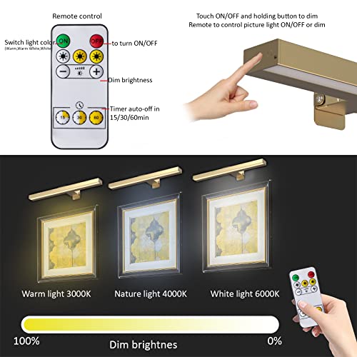 【3 Lighting Modes Painting Lights】- Each art work light has 40pcs super bright LED.The painting light can be switched by 3 lighting modes with 3000k/4000k/6500k (Warm /Nature/White light), remote control or touch button operate.