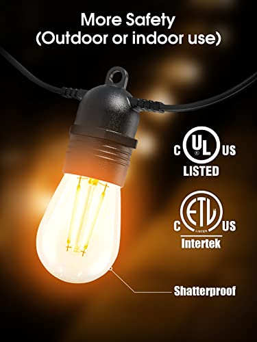 ✅ High Quality Durable Light String: The heavy-duty cord meet with ETL & UL standard. The outdoor string lights are commercial grade with high quality. Safe to use in different circumstance.