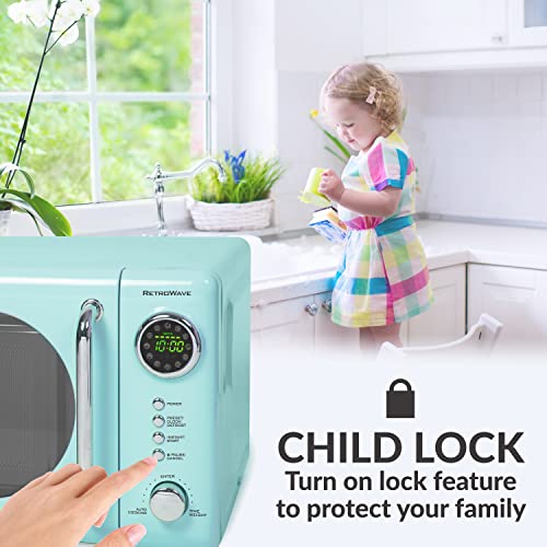 Nostalgia Retro Compact Countertop Microwave Oven, 0.7 Cu. Ft. 700-Watts with LED Digital Display, Child Lock, Easy Clean Interior, Aqua