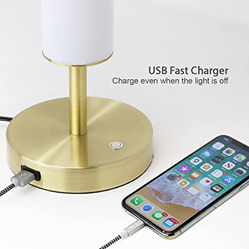 O’Bright Dimmable LED Cylinder Table Lamp with USB Charging Port, 3 Color Temperatures, Modern, Minimal, Night lamp, Desk Lamp for Living Room, Bedroom, Home Office, Antique Brass