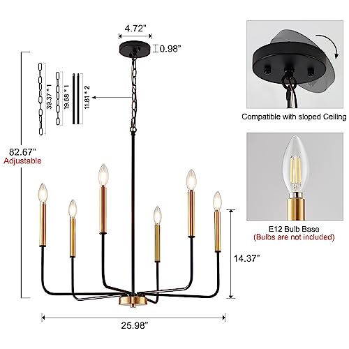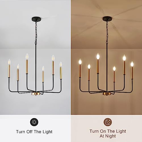 Specification: ONESMING Modern Black and Gold Chandelier for Dining Room,Metal 6-Light Kitchen Light Fixtures,Farmhouse Candle Hanging Pendant Lights for Living Room Entryway Foyer Bedroom (Bulb Not Included)