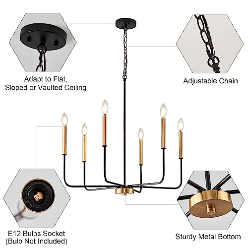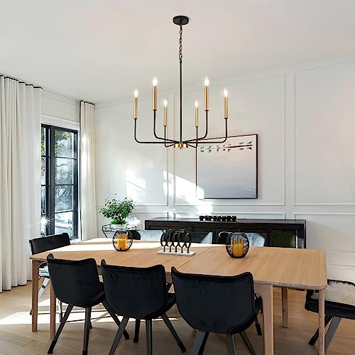 ONESMING Modern Black and Gold Chandelier for Dining Room,Metal 6-Light Kitchen Light Fixtures,Farmhouse Candle Hanging Pendant Lights for Living Room Entryway Foyer Bedroom (Bulb Not Included)