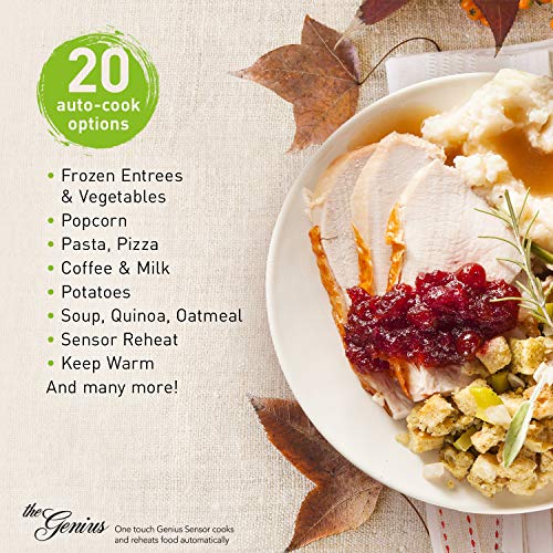 Microwave controls: 20 preset sensor cook menu items, inverter turbo defrost, delay start and timer, more/less control, child safety lock, quick 30 sec and popcorn button with 3 cooking levels