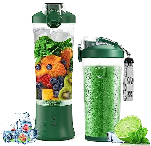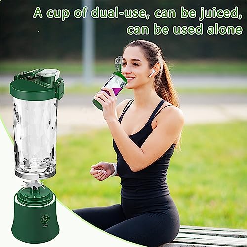 Fsinnsuzi USB Rechargeable Mini Blender, Green, 600ml Capacity, 240W Motor, 6-Leaf Stainless Steel Blades, 18000rpm Speed, Blend/Pulse Mode, Long-Lasting Battery, Portable and Versatile