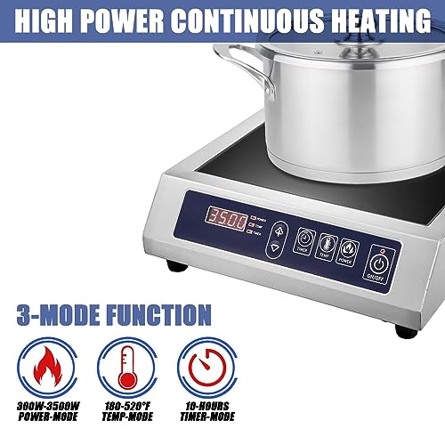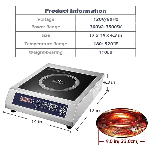 Specification: Robhomily 3500W Commercial Induction Cooktop Portable Electric Countertop Burner, Durable Induction Burner Commercial Grade for Hotel Restaurant School