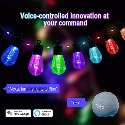 Specification: Smart Outdoor String Lights with Remote, 50FT RGB Color Changing Patio Lights Music Sync Compatible with Alexa for Party Backyard Holiday Home Decor