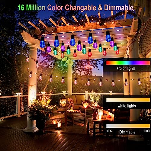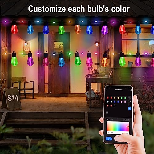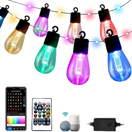 Smart Outdoor String Lights with Remote, 50FT RGB Color Changing Patio Lights Music Sync Compatible with Alexa for Party Backyard Holiday Home Decor