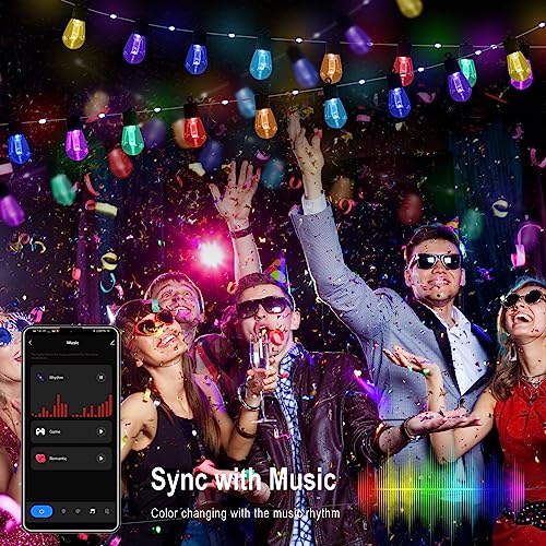 RGB Color&Sync with Music: Comes with a choice of 16 million colors and warm white color, this patio string lights can bring you a colorful life. With three dynamic music modes, watch in awe as the lights synchronize and dance to the rhythm of your favorite tunes. Let the vibrant colors and captivating effects create an immersive audio-visual journey.