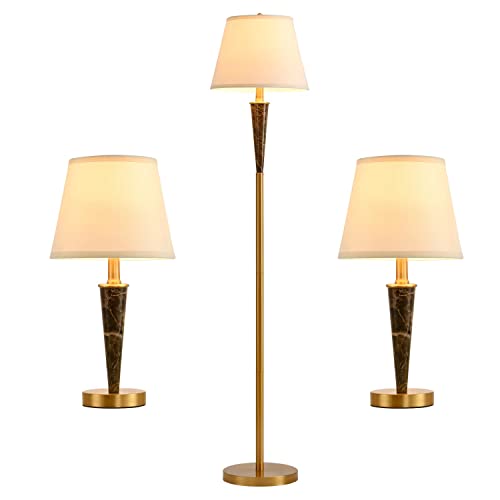 Specification: Smeike 3 Pack Vintage Lamp Set, 2 Table Lamps and 1 Floor Lamp, 3-Piece Bedside Lamp, Nightstand Lamp and Floor Lamp Set for Living Room Bedroom