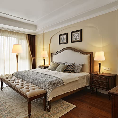 【PREMIUM QUALITY AND SAFE】:These Vintage floor lamp and table nightstand lamp are made of high-grade iron metal and warm white Fabric Lampshade. With clean, simple lines this classic lamp set will beautifully illuminate any space, clean design adds a touch of elegance to any room.With a classic and solid metal stand can prevent the lampshade set from shaking.