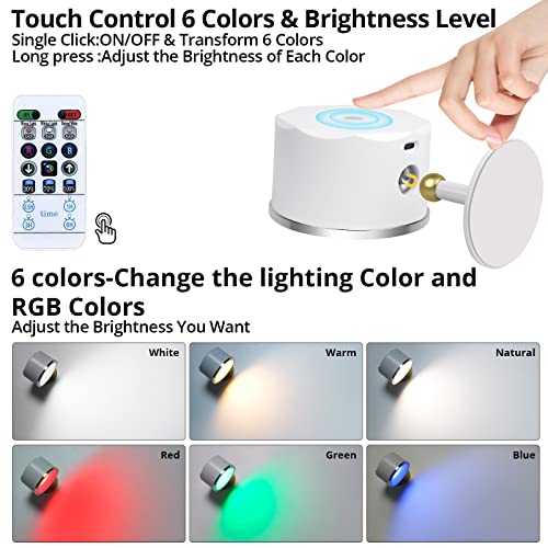 TBTeek Wall Light, Wall Sconce Set of 2, 6 Color Dimmable Closet Light, Rechargeable Battery Stick on Light, Wall Lamp with Remote, Cordless Wall Mount Reading Lamp for Bedside Bedroom, White