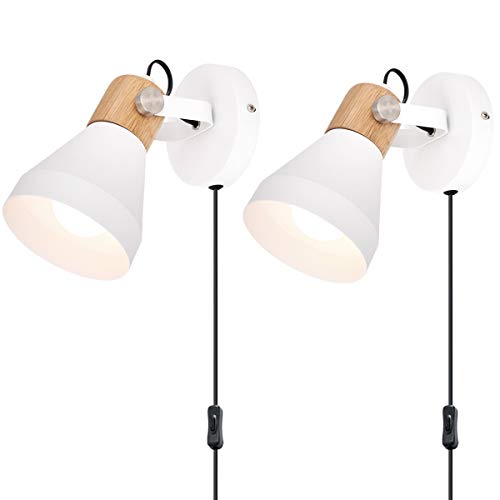 Specification: TeHenoo Wooden Plug in Wall Sconce Set of 2, Matte White Rotatable Wall Lamp with On-Off Switch Cord for Bedroom,Living Room,Reading,Hallway