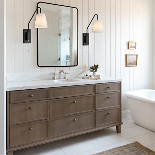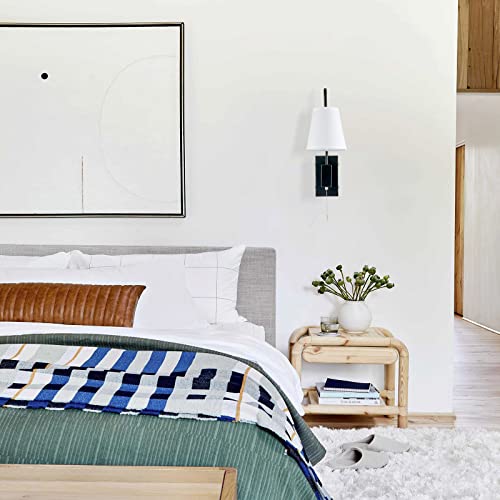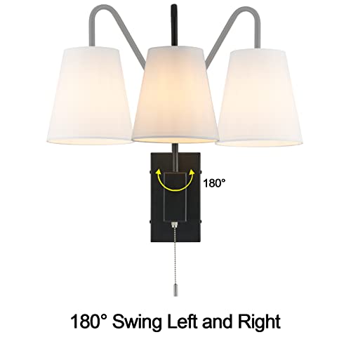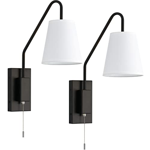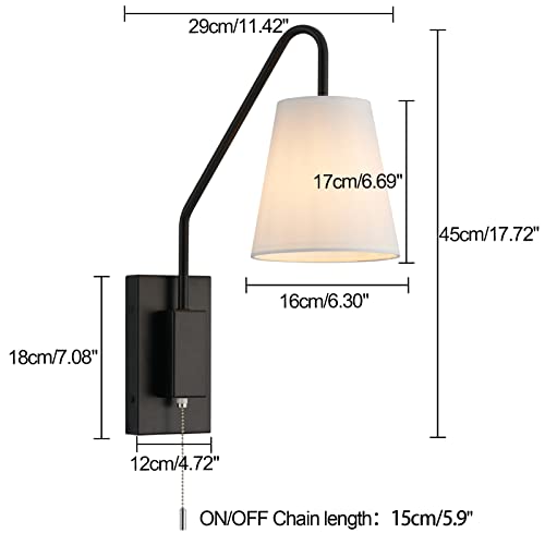 Specification: TERLEENART Modern Classic Set of 2 Swing Arm Bedside Reading Wall Sconce with Pull Chain On/Off Switch, Black Metal Wall Light with Sloped Arm and White Fabric Shade,for Hallway Living Room Bedroom